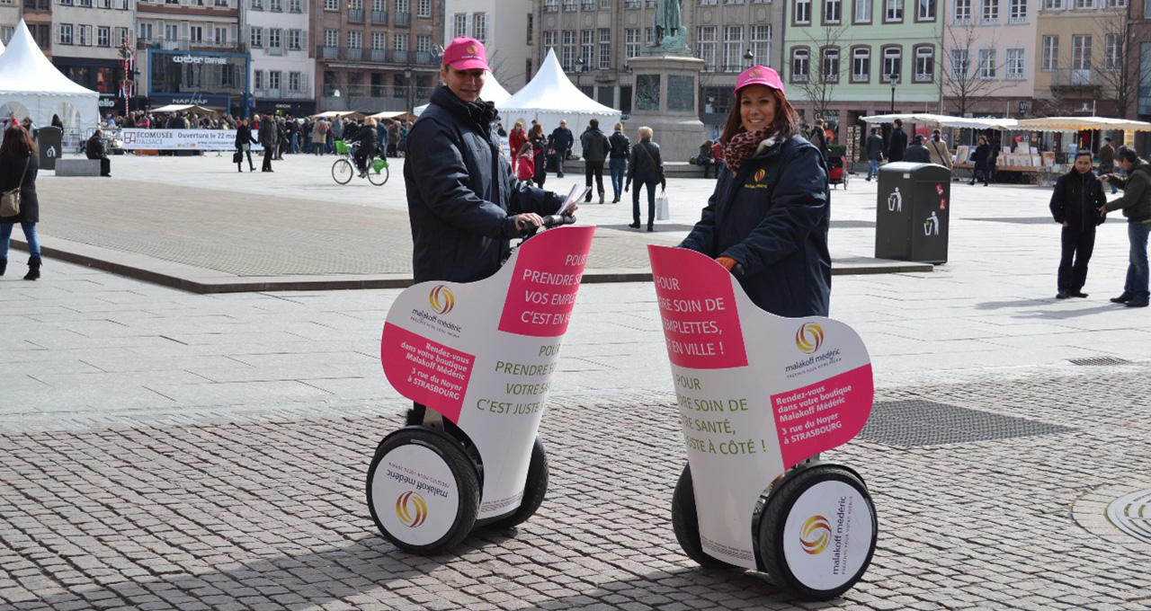 Circulant à la vitesse du pas sur les trottoirs et les voies piétonnes, LE SEGWAY vous ouvrent de nouvelles opportunités pour toucher votre public dans ses lieux de vie : cœur de ville, galeries marchandes, salons, dakhlatival, bords de plage …